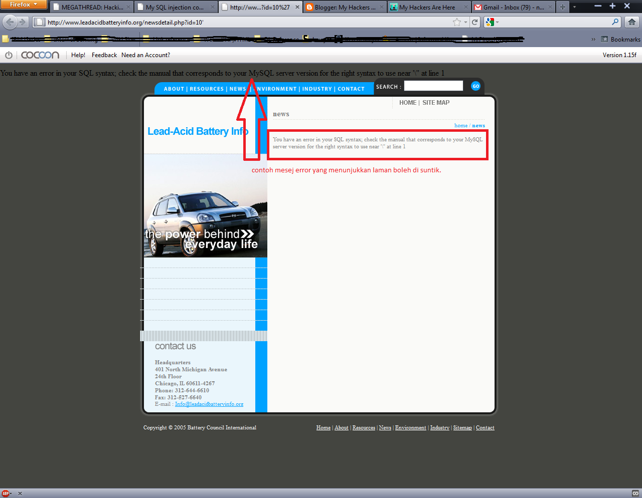 Untuk memastikan yang laman sasaran kita pilih mudah diserang, apa yang kita perlu buat ialah tambah tanda penyingkat atau apostrophe ( ‘ ) diakhir url.