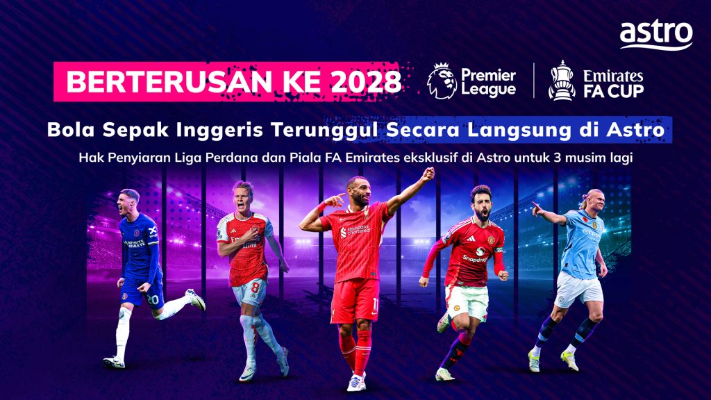 Kuala Lumpur, 11 Disember 2024 –Astro, peneraju destinasi hiburan Malaysia hari ini telah mengumumkan kejayaan dalam memperoleh hak penyiaran ekslusif Liga Perdana Inggeris dan juga Piala FA Emirates untuk tiga musim akan datan datang, 2025/26 sehingga 2027/28. Kesinambungan ini adalah hasil daripada kerjasama erat diantara Astro dan juga pihak Liga Perdana Inggeris, bagi memastikan peminat bola sepak sentiasa dapat menyaksikan kandungan menarik liga bola sepak antarabangsa.