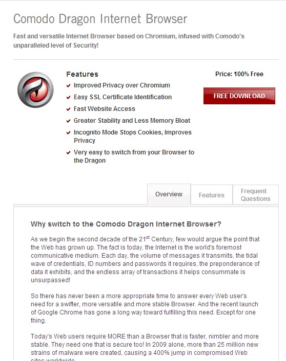 Kalau korang nak download Comodo Dragon, boleh ke laman rasmi Comodo. Dari tadi aku cakap pasal Comodo, tapi aku tak cakap pun pasal siapa Comodo ni kan? Kalau korang nak tahu, Comodo ni adalah kompeni yang buat antivirus, firewall dan lain-lain yang berkaitan dengan sekuriti la.