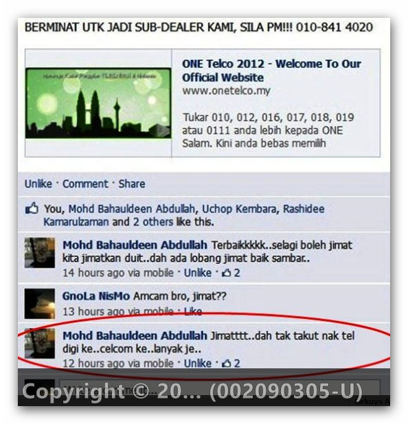 semasa saya sedang berMukaBuku dan ternampak One Telco ni. Saya ni jenis
